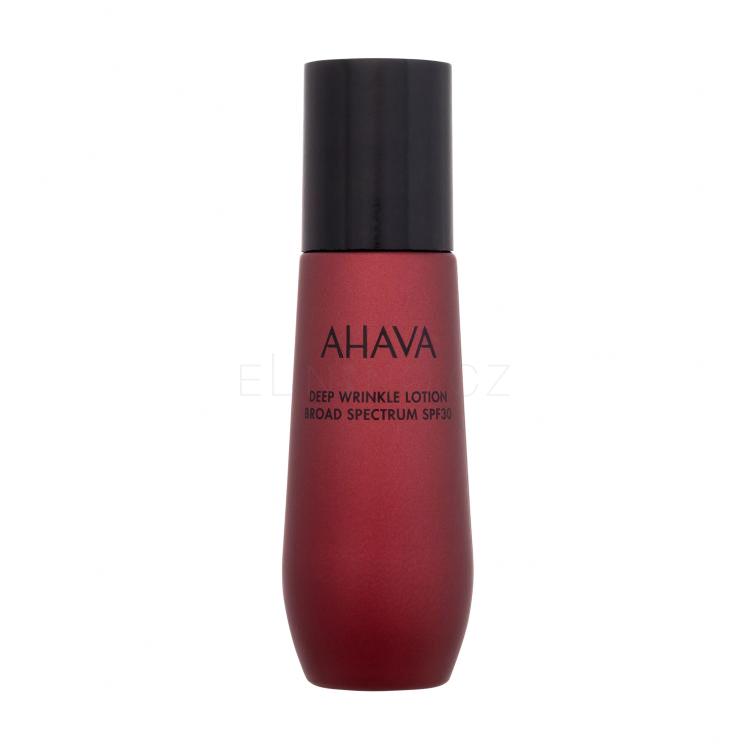 AHAVA Apple Of Sodom Advanced Deep Wrinkle Lotion SPF30 je lehké hydratační mléko, které poskytuje ochranu proti UVA/UVB záření a bojuje proti hlubokým vráskám. Kombinuje Osmoter, exkluzivní směs minerálů z Mrtvého moře, která prokazatelně zvyšuje hydrataci pleti, a extrakty z Apple of Sodom, rostliny známé pro své protistárnoucí vlastnosti.