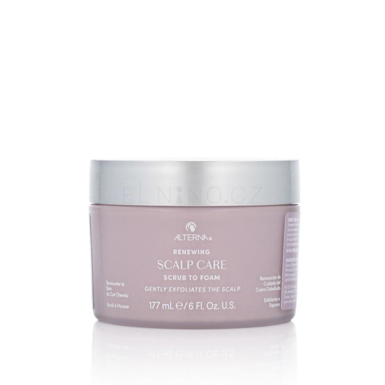 Alterna Renewing Scalp Care Scrub To Foam – 177 ml je čisticí peeling na pokožku hlavy, který se při kontaktu s vodou mění na pěnu. Jemně odstraňuje nečistoty, přebytečný maz a nahromaděné stylingové produkty, čímž pomáhá revitalizovat a osvěžit vlasovou pokožku. Díky exfoliačním složkám stimuluje mikrocirkulaci, podporuje zdravý růst vlasů a zanechává pokožku hlavy dokonale čistou a svěží. Vlastnosti Jemně čistí a detoxikuje pokožku hlavy.Odstraňuje přebytečný maz a usazeniny ze stylingových produktů.Stimuluje mikrocirkulaci, čímž podporuje zdravý růst vlasů.Při kontaktu s vodou se mění na pěnu, která se snadno vymývá.Vhodný pro všechny typy vlasové pokožky.Klíčové složky Jemné exfoliační částečky – odstraňují nečistoty a odumřelé kožní buňky.Hydratační složky – pomáhají udržet optimální vlhkost pokožky a zabraňují vysoušení.Přírodní antioxidanty – chrání pokožku před vnějšími agresory a volnými radikály.Použití Aplikujte na mokrou pokožku hlavy.Jemně vmasírujte, dokud se peeling nezmění na pěnu.Důkladně opláchněte a pokračujte ve své běžné vlasové rutině.Doporučuje se používat 1–2× týdně pro zdravou pokožku hlavy.Alterna Renewing Scalp Care Scrub To Foam je ideální pro ty, kteří chtějí čistou, zdravou pokožku hlavy bez usazenin a přebytečného mazu, což vede k silnějším a zdravějším vlasům.
