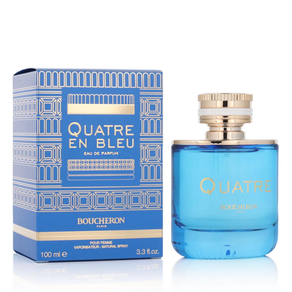 Parfémovaná voda Boucheron Quarte i její následovnice včetně Boucheron Quatre En Bleu se jmenují po slavné kolekci šperků. Taktéž design flakonku koresponduje s prstenem z kolekce Quatre. Zakladatelka série, vůně Quatre, se představuje harmonií citronu, pomeranče, grapefruitu a tangerinky. Srdce nabízí tóny sladké broskve, jasmínu, růže, šťavnatého jablka a jahody. Základ je svůdným spojením cedru, kašmeranu, bílého pižma, vanilky a karamelu.
