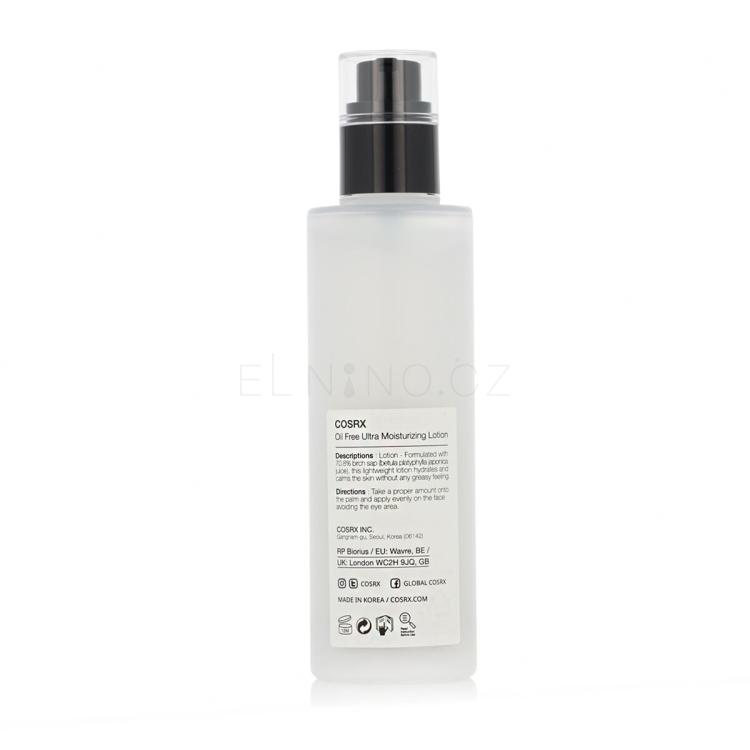 COSRX OIL-FREE Ultra Moisturizing Lotion je lehké, ale intenzivně hydratační mléko, který je ideální pro všechny typy pleti, včetně mastné a aknózní. Tento produkt je speciálně formulován s 70 % březového šťávy, která zajišťuje hlubokou hydrataci bez přidání oleje, čímž se vyhnete zatěžování pleti. Výhody Poskytuje intenzivní hydrataci bez zanechání mastného pocitu. Zklidňuje podrážděnou a citlivou pokožku, redukuje začervenání a podráždění. Zlepšuje pružnost pleti a pomáhá udržovat zdravý, hydratovaný vzhled. Rychle se vstřebává a je vhodný pro použití ve dne i v noci. Klíčové složky Březová šťáva (70%) - poskytuje bohatou hydrataci a zlepšuje pružnost pokožky. Hyaluronová kyselina - dodává pokožce hloubkovou hydrataci a zabraňuje její ztrátě. Tea tree olej - známý pro své antiseptické a protizánětlivé vlastnosti, pomáhá v boji proti akné. Allantoin - zklidňuje a chrání pokožku, podporuje regeneraci. PoužitíPo očištění a tonizaci pokožky naneste malé množství mléka na obličej a krk. Jemně vmasírujte do pokožky, dokud se produkt plně nevstřebá. Mléko můžete používat jak ráno, tak večer, podle potřeby hydratace. Péče o pleť – rutina