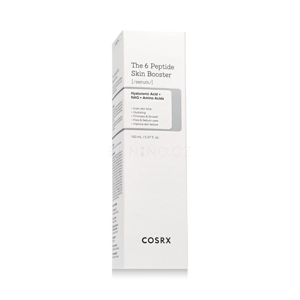 COSRX The 6 Peptide Skin Booster Serum je vysoce koncentrované hydratačně-regenerační sérum, které se stává nezbytným prvním krokem v péči o pleť po jejím čištění. Tento inovativní produkt obsahuje komplex šesti účinných peptidů, které efektivně vyhlazují jemné linky, zpevňují pleť a zlepšují její elasticitu, přičemž ji zároveň intenzivně hydratují a připravují na optimální vstřebání dalších aktivních látek.