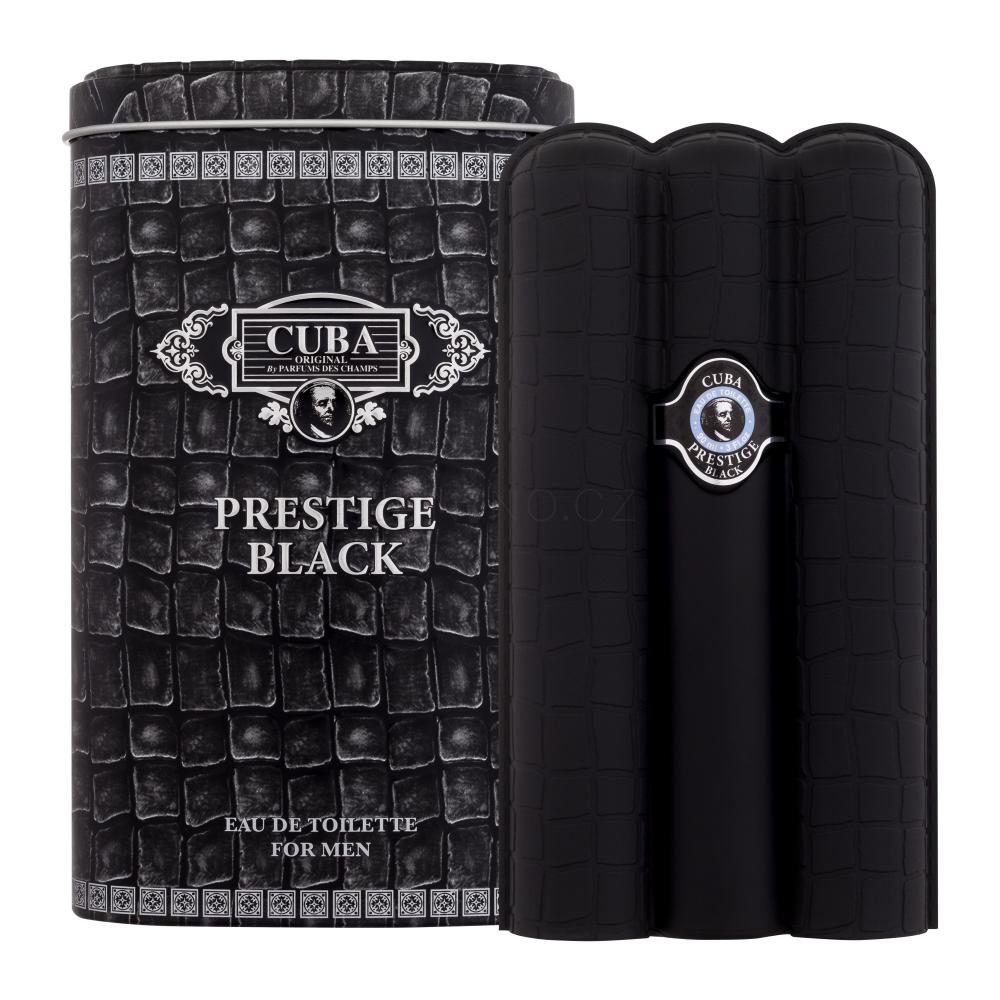 Parfémy značky Cuba jsou žádané pro své jedinečné vůně s nezaměnitelnou atmosférou Kuby, pro design flakonků v podobě kubánských doutníků a v neposlední řadě také pro mimořádně dostupné ceny. Přitom nevoní takzvaně levně, ale jsou hodnotnými doplňky moderních mužů a žen. Toaletní voda Cuba Prestige Black je v recenzích zákazníků často řazená hned za nejoblíbenější pánskou vůni značky Cuba, kterou je Gold. Tuto vyhledávanou vonnou kompozici vytváří grapefruit, růžový pepř, vetiver, levandule, ambra a vanilka. Náleží k ní široká série doprovodné kosmetiky a dostupné jsou i dárkové kazety.