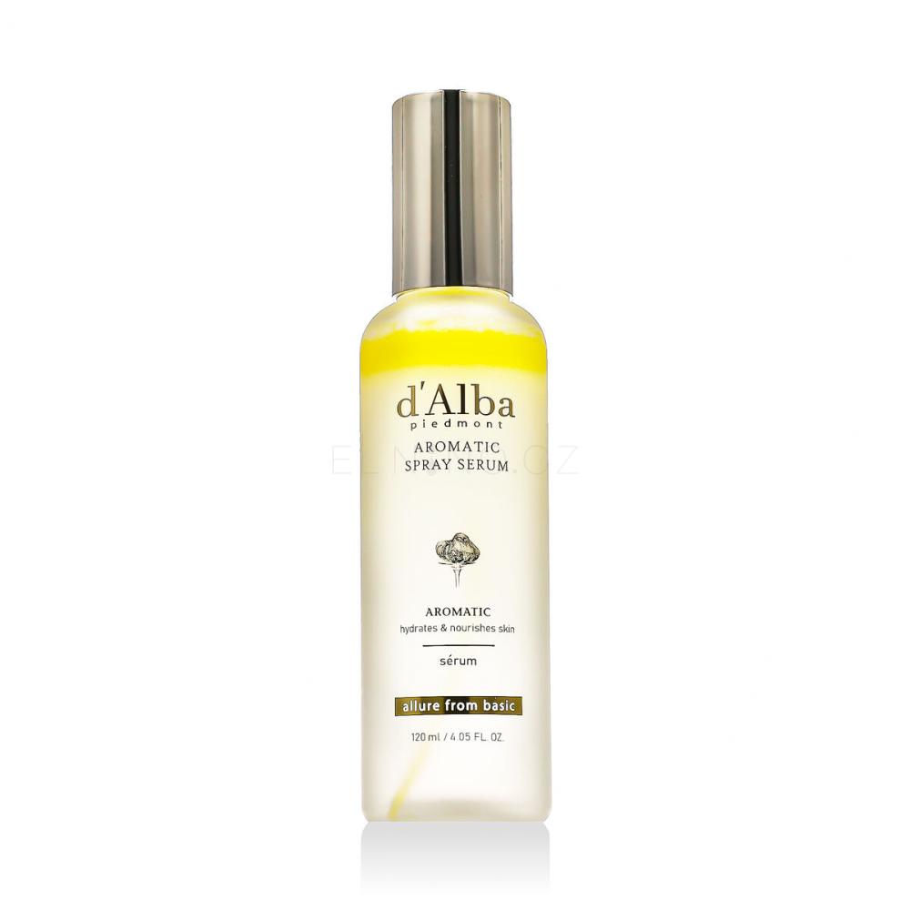 d'Alba White Truffle First Aromatic Spray Serum 120 ml je luxusní dvouvrstvé sprejové sérum, které okamžitě hydratuje, vyživuje a rozjasňuje pleť. Jeho jedinečná kombinace vodní a olejové fáze zajišťuje intenzivní hydrataci bez pocitu mastnoty. Díky obsahu bílého lanýže, avokádového oleje a rostlinných extraktů pomáhá regenerovat pleť, posilovat kožní bariéru a chránit ji před předčasným stárnutím. Jemná mlžná textura zaručuje okamžité osvěžení a dlouhotrvající komfort, což činí toto sérum ideálním společníkem pro každodenní péči o pleť.