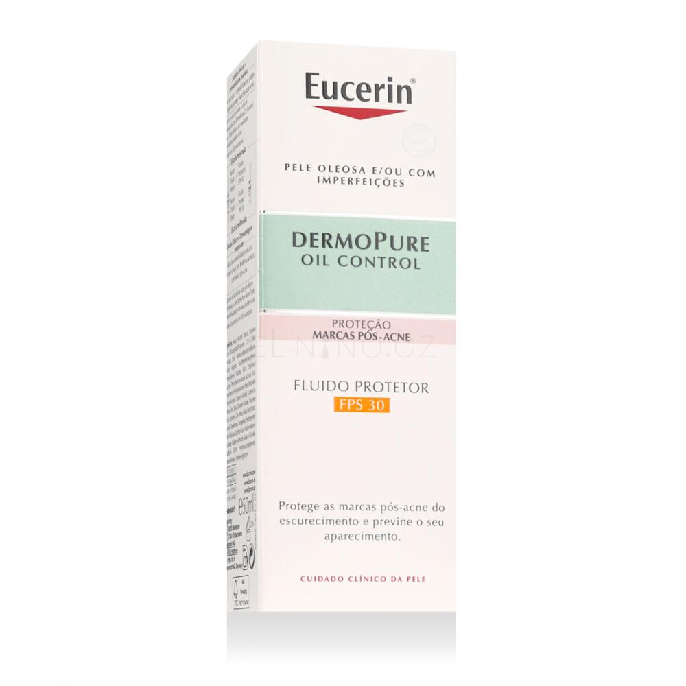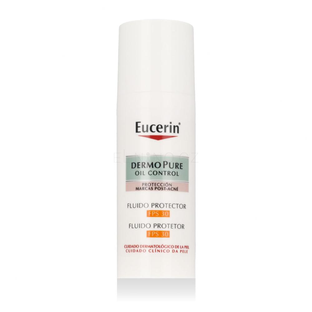 Eucerin DermoPure Oil Control Protective Fluid SPF 30 50 ml je lehký denní ochranný fluid určený pro mastnou a aknózní pleť. Tento jedinečný produkt spojuje účinnou sluneční ochranu SPF 30s pokročilou technologií regulující tvorbu kožního mazu. Obsahuje L-karnitin a matující pigmenty, které se postarají o dlouhotrvající matný vzhled pleti, aniž by ucpe pory. Díky své nekomedogenní formulaci je ideální pro všechny, kteří chtějí vyvážit ochranu pleti s prevencí akné.