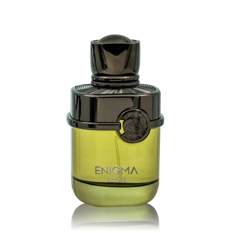 Úvodní tóny Enigma Trois jsou svěží a energické, s citrusovými akordy, které působí jako krátký, jasný záblesk světla na začátku vůně. Tato okamžitá svěžest se rychle mění na tmavší a teplejší srdce kompozice, v němž dominuje ušlechtilý a tajemný oud. Oud je cenným a vzácným ingrediencem, jehož hloubka a bohatství jsou dále obohaceny krémovými a jemně dřevitými tóny amyrisu, které dodávají vůni měkkost a jemnost. Aromatický dotek koriandru pak přináší kořenitou svěžest a komplexnost, čímž vytváří fascinující kontrast mezi hřejivostí a lehkým napětím.