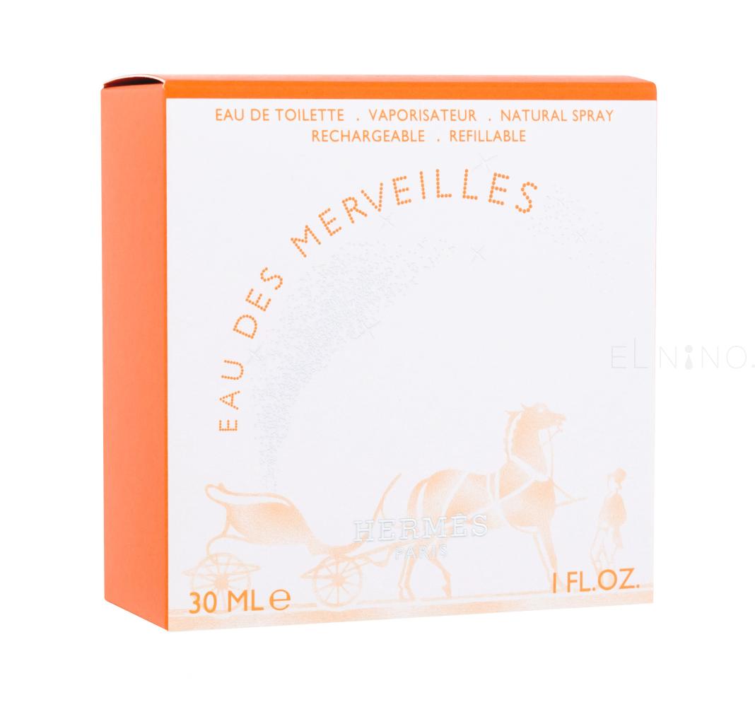 Složení Eau des Merveilles není na první pohled až tak zvláštní. Pomeranč, citron, ambra, pepř, dřevitý základ s vetiverem a chyprovým větvičníkem. Na druhý pohled si uvědomíte, že tam není žádná květina (jen někdy se uvádí fialka) a nic sladkého. A přesně tak by se Eau des Merveilles dala charakterizovat: nic sladkého, jen citrusy, dřevo a koření. Uvítá vás pomeranč s citronem, ale nečekejte sladkou limonádu, tohle je perlivá voda ochucená jen citrusovou šťávou, bez cukru. Jen co ji dopijete, od moře přiletí větřík a přinese vůni slané vody a mořských řas. Eau des Merveilles je suchá, nesladká, ale ne drsná; je v ní i vůně sluncem políbené pokožky se stopami opalovacího krému a stromů rostoucích dál od pláže.