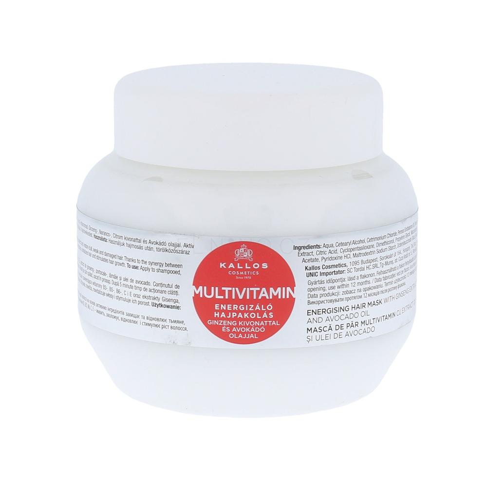 Maska na vlasy Kallos Multivitamin Hair Mask hloubkově hydratuje suché vlasy. Složení je obohaceno o avokádový olej a extrakt z ženšenu, které vlasům dodávají energii a vitalitu. Po použití budou vlasy hydratované, svěží a zdravé.