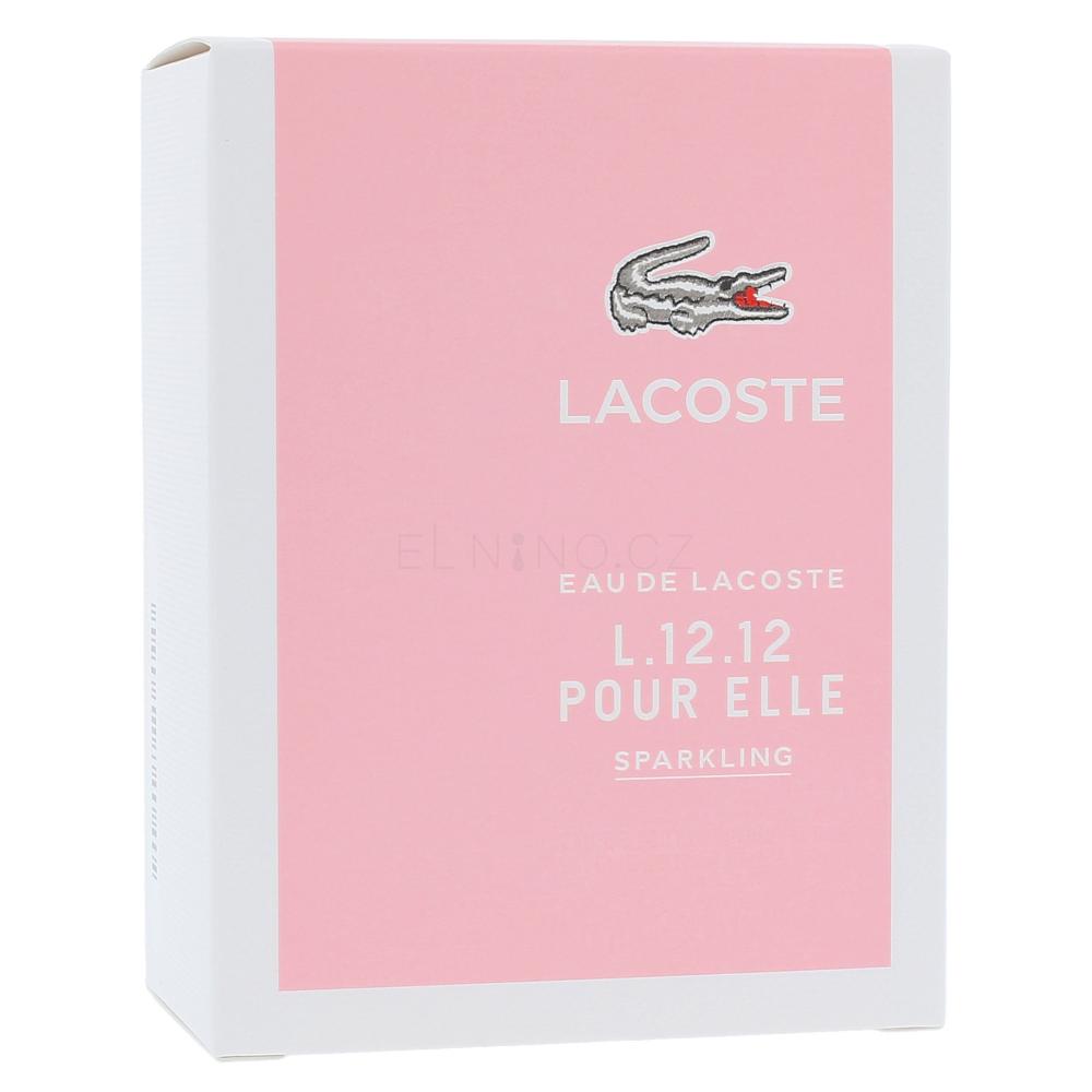 Dámská toaletní voda Pour Elle Sparkling z roku 2015 náleží do kolekce vůní Eau de Lacoste L.12.12, které oslavují ženskou krásu, módu a uvolněnost. Každá z nich reprezentuje jednu náladu – konkrétně Pour Elle Sparkling všemi svými esencemi vyzařuje radost ze života. Vychází z francouzských gastronomických tradic, takže nemůže pominout makronky! Protože obsahuje spíše lehčí složky, je ideální pro jarní a letní sezónu. Lze ji nosit celodenně – do školy, zaměstnání, při sportu, do společnosti i na schůzky. Večer použijte vonné směsi více.