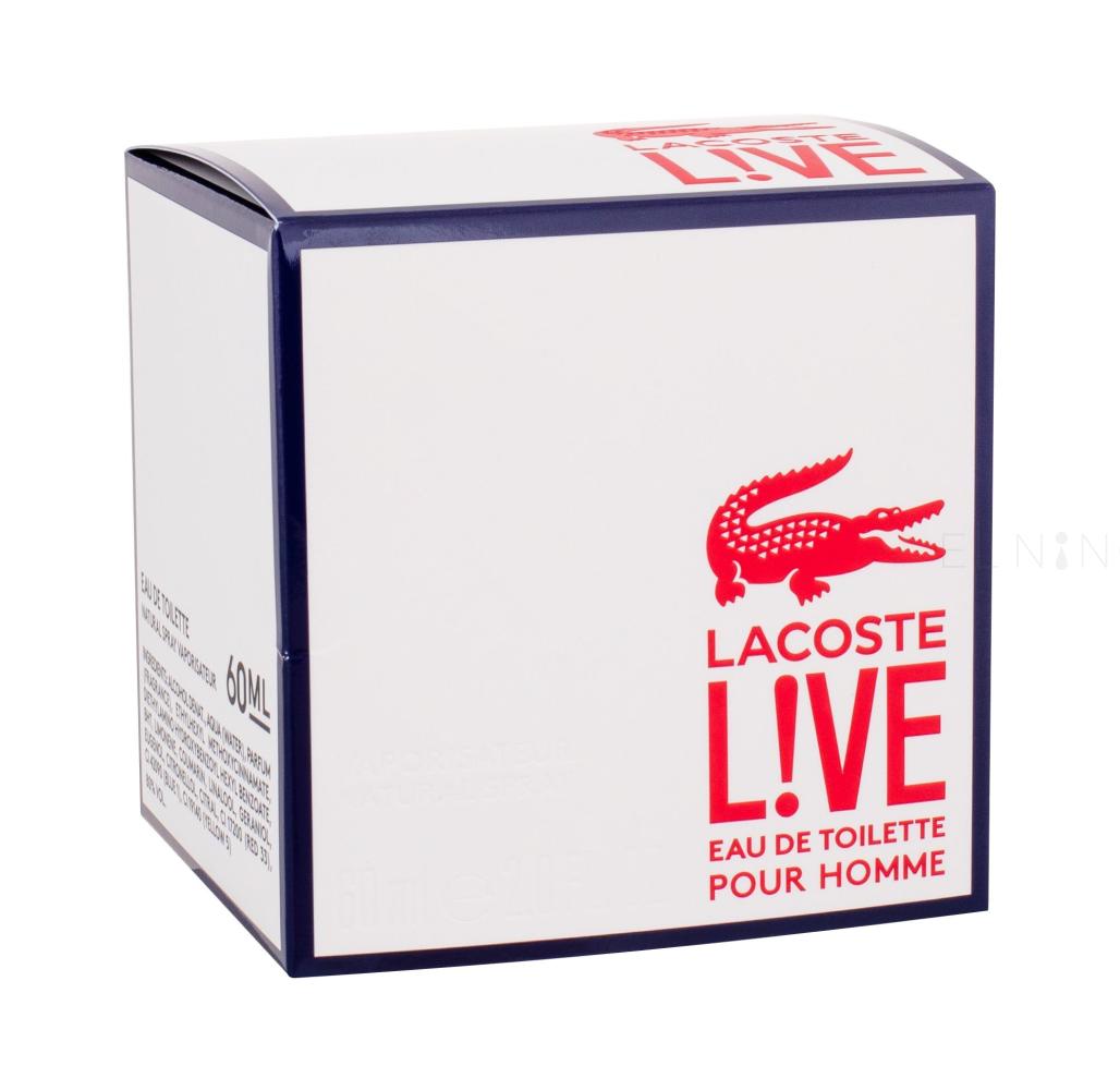 Pro muže, který si užívá život plnými doušky je vytvořená vůně toaletní vody pro muže Lacoste Live. Vůně, jež našla svou inspiraci v typické polokošili s krátkým rukávem s motivem krokodýla, byla představena v roce 2014. Osvěžující vůně pro moderního muže, který žije městským stylem, spojuje nečekané vonné ingredience, jež však dohromady vytvářejí jedinečný, harmonický vonný koncert. Také design flakonku je výjimečný, upoutá vás svým tvarem kostky i barvami, které vás nabijí energií.