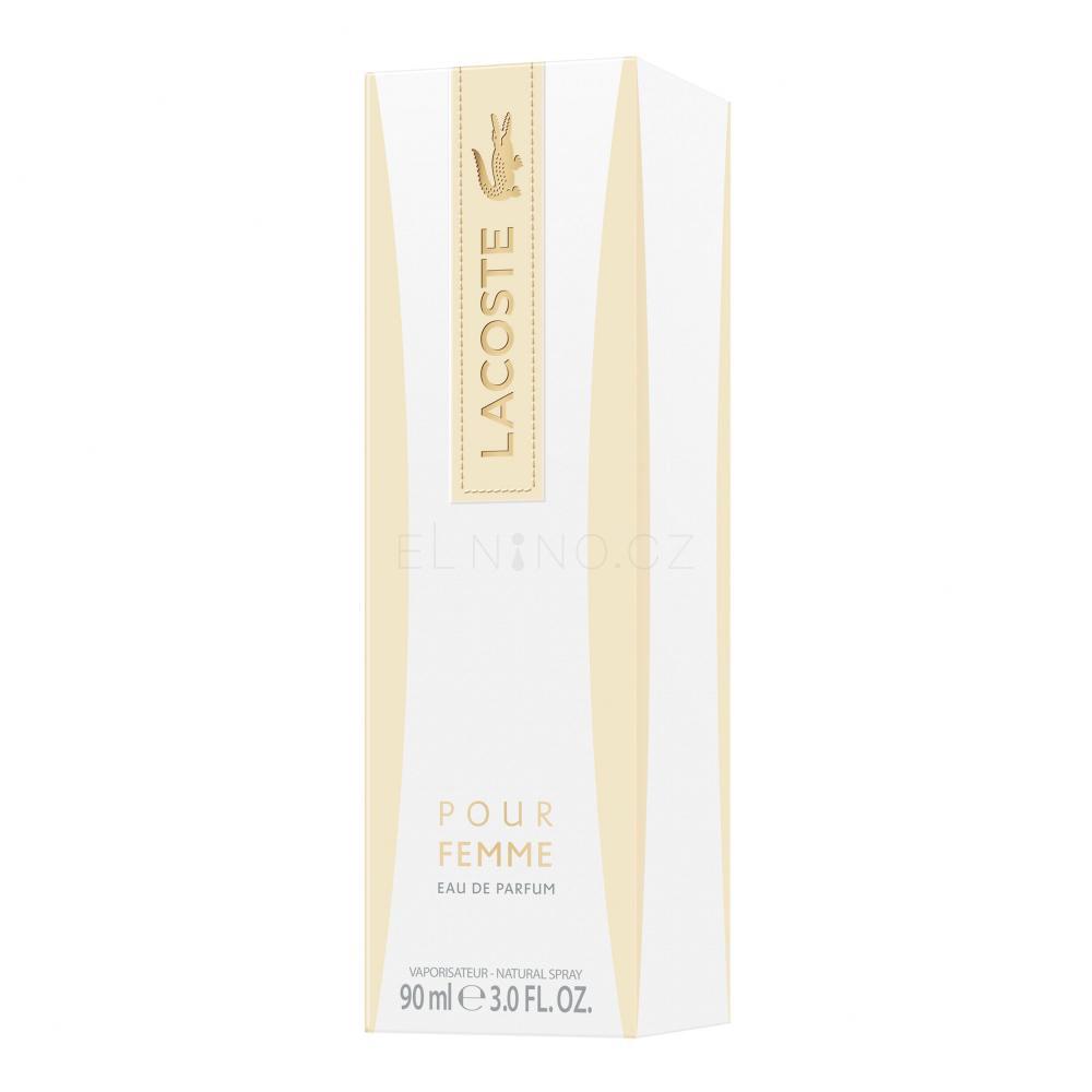 Parfémovaná voda Lacoste Pour Femme je sytá dámská vůně nabitá energií a dobrou náladou, na trhu od roku 2003. Představuje moderní parfémové dílo s čistým stylem, vytvořené pro ženu, která má v sobě ryzí přitažlivost a půvab; pro ženu odvážnou, úspěšnou, ale také emotivní, jež se dělí s okolím o své pocity. Žena Lacoste je plná vnitřní krásy, kterou však nedává na odiv vyzývavě. Díky tomu je pro většinu mužů velmi atraktivní.