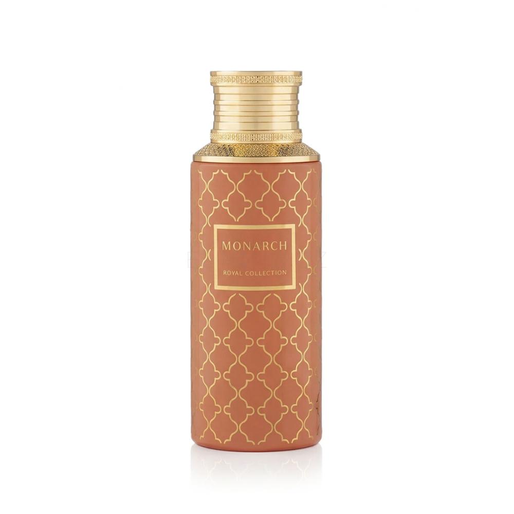 MAISON ASRAR Monarch je okouzlující a hřejivá orientálně-květinová vůně pro ženy i muže, která byla uvedena na trh v roce 2025. Tato sofistikovaná kompozice se pyšní harmonickým spojením sladkých ovocných tónů, které podtrhují bohaté a krémové srdce s tóny jasmínu, mléka a kokosu, čímž vytváří vzdušné a smyslné aroma. V úvodu se odhaluje lahodná směs broskve, kardamomu a skořice, která dodává parfému sladký, kořeněný a hřejivý nádech, jenž dává celému zážitku hloubku a charakter.