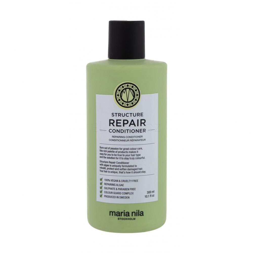 Navraťte svým vlasům jejich přirozenou sílu s obnovujícím kondicionérem Maria Nila Structure Repair. Intenzivně je zvláčňuje, vyživuje, vyhlazuje jejich strukturu a tím zvyšuje lesk. Zachovává barvu vlasů díky komplexu Color Guard, který je chrání před nepříznivými vlivy slunečního záření a působením volných radikálů. Pravidelným používáním získáte pevné a pružné vlasy plné života.