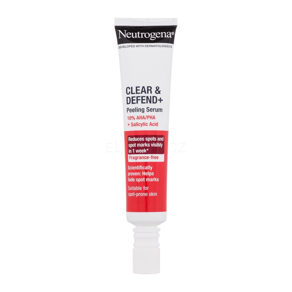 Sérum Neutrogena Clear & Defend+ Peeling Serum si účinně poradí s pupínky i jejich následky. Vysoká koncentrace špičkových kyselin pomáhá odstraňovat odumřelé buňky, snižuje výskyt akné, zlepšuje texturu pleti a přispívá k vyblednutí skvrn po pupíncích. Pro zdravěji vypadající a zářivou pleť.