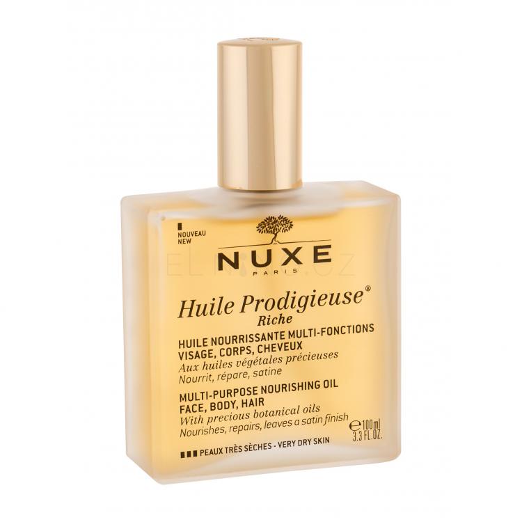 Multifunkční olej NUXE Huile Prodigieuse Riche přináší komfort suché pokožce a vlasům, které díky směsi 7 vzácných olejů intenzivně vyživuje, hydratuje a regeneruje.