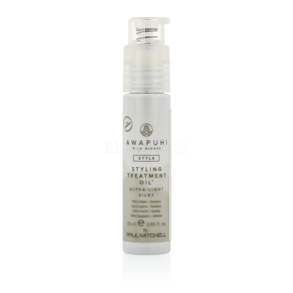 Paul Mitchell Awapuhi Wild Ginger Style Styling Treatment Oil – regenerační stylingový olej (25 ml)Luxusní regenerační olej, který kombinuje hydratační složky a přírodní výtažek z havajského zázvoru Awapuhi. Vlasy uhlazuje, vyživuje, chrání před poškozením a dodává jim oslnivý lesk. Ideální pro suché, poškozené nebo krepaté vlasy, kterým navrací hebkost a zdravý vzhled. Vlastnosti Hloubkově hydratuje a vyživuje vlasová vlákna.Uhlazuje vlasy a eliminuje krepatění.Obsahuje přírodní výtažek z Awapuhi pro výživu a hydrataci.Zlepšuje lesk vlasů a zanechává je hedvábně jemné.Vhodný pro všechny typy vlasů, především suché a poškozené.Klíčové benefity Rychle se vstřebává a nezatěžuje vlasy.Usnadňuje úpravu vlasů a zlepšuje jejich ovladatelnost.Chrání vlasy před poškozením způsobeným teplem při stylingu.Redukuje suchost a dodává vlasům přirozenou pružnost.Luxusní textura a jemná exotická vůně.Použití Naneste malé množství oleje na vlhké vlasy, zejména na délky a konečky.Pro lepší rozčesávání a ochranu vlasů použijte před tepelným stylingem.Na suché vlasy aplikujte pro eliminaci krepatění a dodání lesku.Lze kombinovat s dalšími stylingovými produkty z řady Awapuhi Wild Ginger.
