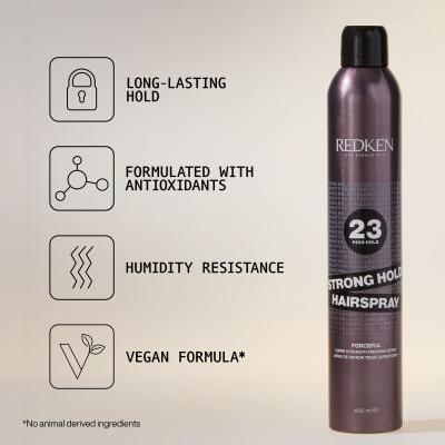 Lak na vlasy Redken Forceful 23 Hairprays Extra silný sprej pro konečnou úpravu vlasů. Dovede Vás styl k absolutné dokonalosti. Rychle schnoucí, ultračisté složení přináší dlouhotrvající tvarovou paměť a 8 hodin maximální fixace. Vyjímečná technologie Shine Charged pomáhá vytvořit "nekrepaté" zářivé účesy plné lesku a příjemné na dotek.