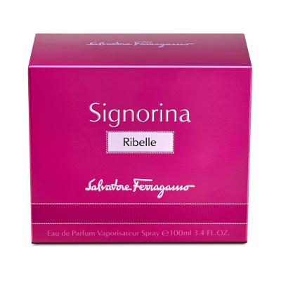 Parfémovaná voda Ferragamo Signorina Ribelle obohatila roku 2019 kolekci vůní Signorina, zahájenou roku 2011. Patří zde třeba Signorina Eleganza, In Fiore, In Rosso, Misteriosa… Je to zkrátka mix vůní pro různé typy žen. Typický obdélníkový flakon s vara mašlí se tentokrát zahalil do výrazné fuchsiově fialové barvy. Jak vonná kompozice, tak design podporují sílu a odvahu dnešních žen, které s nadšením přijímají vše, co jim život nabízí.
