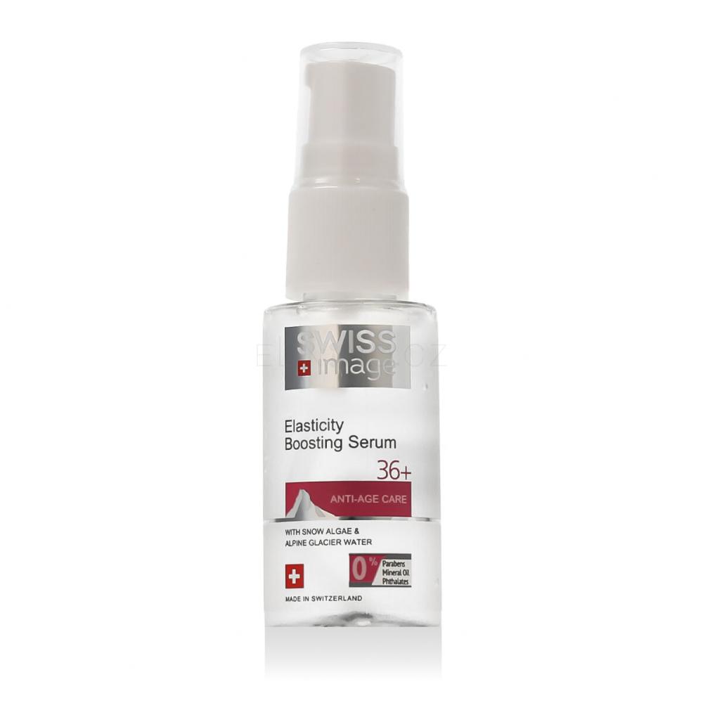 SWISS Image Anti-Age Care 36+ Elasticity Boosting Serum je intenzivní pleťové sérum navržené speciálně pro potřeby pleti od 36 let. Hlavními ingrediencemi jsou vysoce účinné peptidy a přírodní oleje, které společně pomáhají zpevnit a rozjasnit pleť. Sérum nabízí bohatou hydrataci, zatímco jeho lehká, rychle vstřebatelná textura zajišťuje okamžité vyhlazení jemných linií a vrásek, čímž posiluje přirozenou elasticitu pleti.