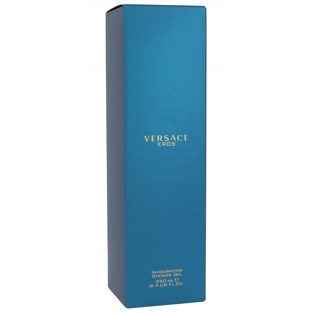 Versace čerpá inspiraci v řecké mytologii a vytváří parfém Eros zdůrazňující neomezenou vášeň a touhu. Parfém Versace Eros je vůní hrdinů; všech těch, kteří bojují a stojí si za svými myšlenkami i názory. Tyrkysová barva je odrazem Středomoří a zároveň barvou Versace.