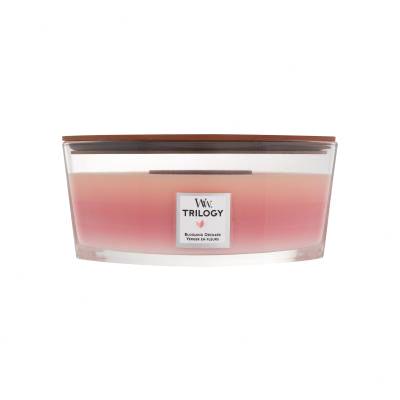 Vonná svíčka WoodWick Trilogy Blooming Orchard je vyrobená ze směsi prémiového parafínu a sójového vosku s vysoce koncentrovanými vůněmi. Inovativní přírodní dřevěný knot Pluswick® Innovation vytváří uklidňující zvuk praskajícího ohně.
